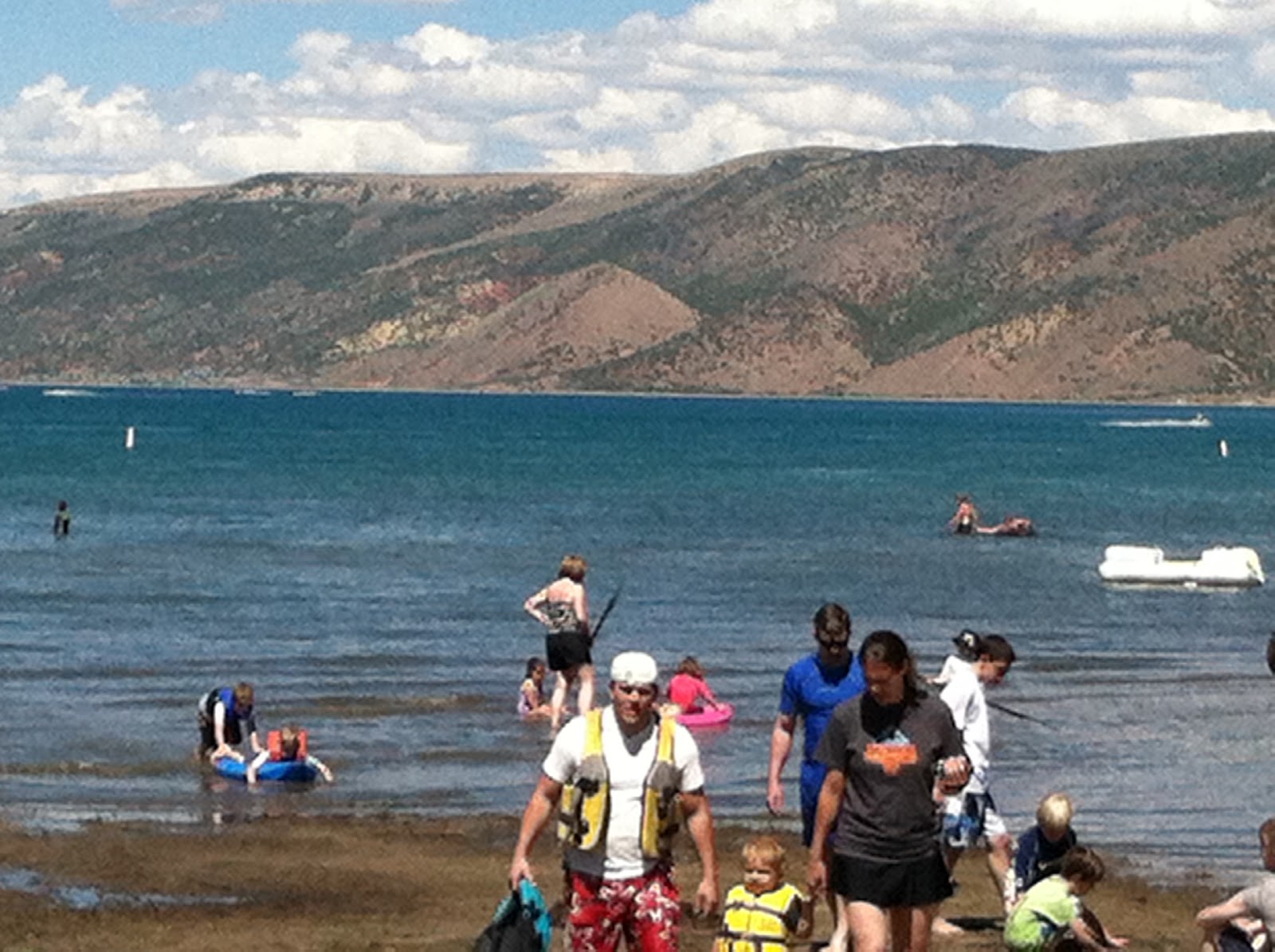 Tuesday was a lake day. I didn't grow up doing water sports like Mike did. I don't know how to water ski, or wakeboard. And more than that I don't swim in lakes, it makes me nervous and the water is usually colder than I would like. So this was my first real experience at a lake and it was quite lovely. I went out on the boat and watched Mike jet ski and wakeboard. Then Mike took me out on a jet ski and taught me how to drive it. That was a lot of fun, I look forward to doing that again sometime soon. The rest of the time we spend on the beach with the family. It was fun watching the kids play in the sand, they were a mess, but that't how you know it was a good day.