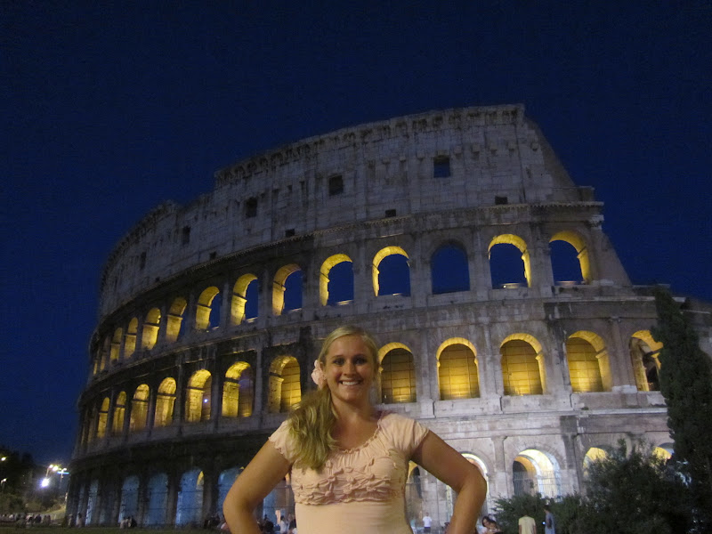 After all of that we grabbed a slice of pizza and a cup of fruit and had a picnic dinner in front of the colosseum as we waited for the sun to set and the lights to come on. It was really fun to watch people and enjoy the cool night time weather. Once the sun went down we took a lot of fun pictures of the area.